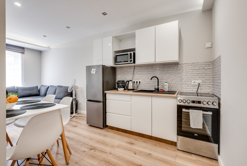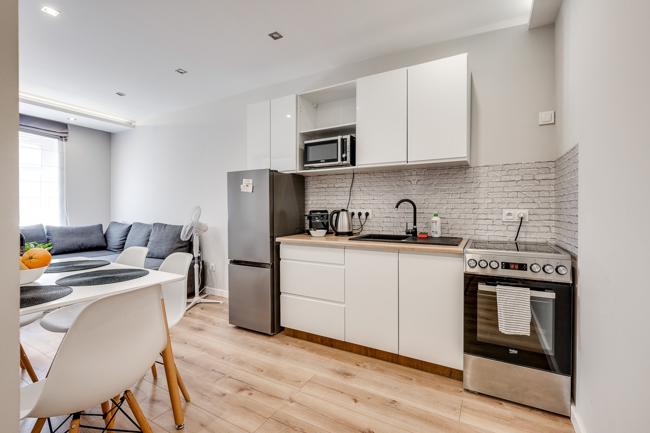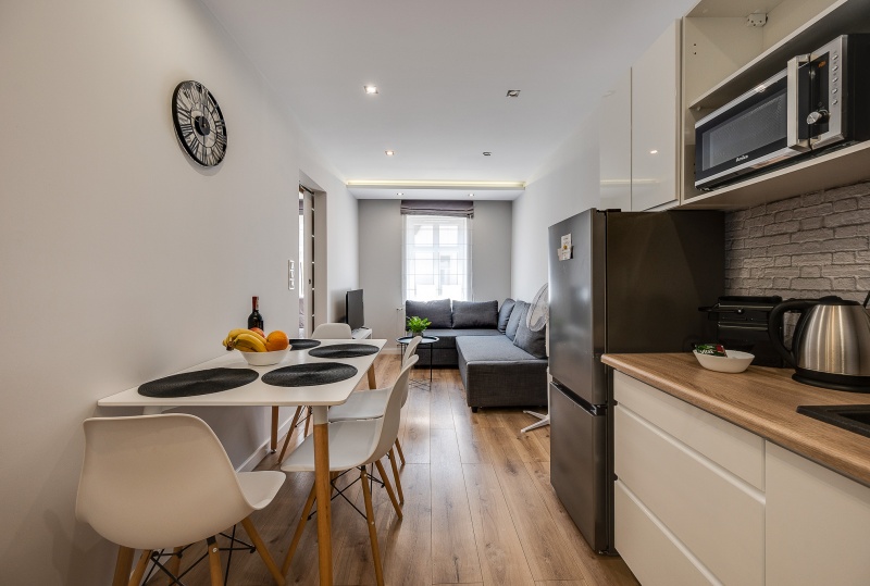 W tym komfortowym i przytulnym apartamencie znajduje się duży salon połączony wraz z aneksem kuchennym w którym znajduje się wszystko co potrzeba ( czajnik, piec wraz z piekarnikiem, kuchenka mikrofalowa lodówka, ekspres do kawy)prywatna łazienka wraz z pralką oraz jedna sypialnia, w której znajduje się podwójne łóżko oraz duża szafa. W salonie rozkładana sofą na której komfortowo odpoczną 2 osoby. Stół jadalniany dla 4 osób